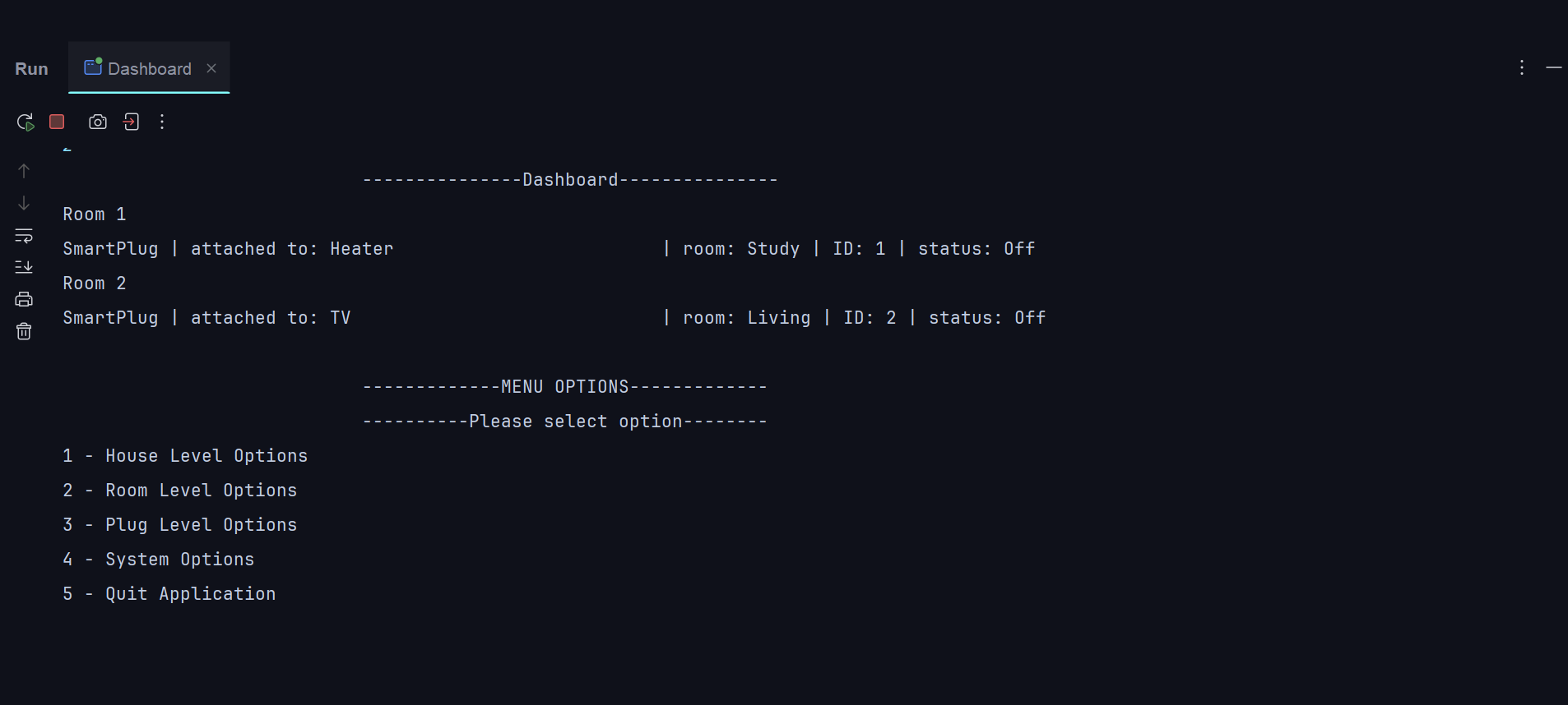 Created a Java CLI application for smart home management, including device control, room status monitoring etc.